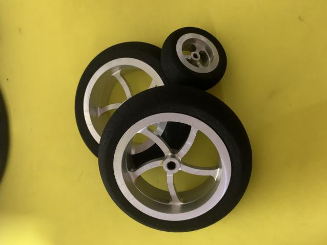 Set Ruote + ruotino ricavate dal pieno , imboccolate ottone foro 5 mm misura 100 mm ruotino 45 mm fornisco anche altri due cerchi di scorta €50 contatti su whatsApp |