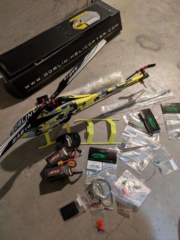 Vendo Sab Goblin Fireball, completo di svariati ricambi (tubo di coda, pinna di coda con cuscinetto integrato, tirante di coda, etcetc come in foto). Il modello é completo di servi, motore, regolatore e 2 batterie, tutto di marca Sab. Per metterlo in volo serve ricevente e sistema flybarless. |