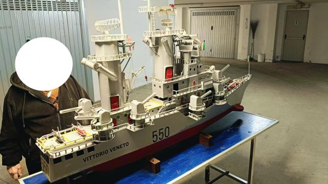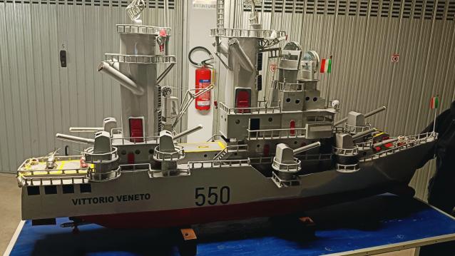 Vendo modello in metallo, interamente costruito a mano, in 600 ore di lavoro, della corazzata "Vittorio Veneto". Lunghezza 195 cm, Altezza 140cm, Larghezza 55 cm. Prezzo trattabile dopo visione in loco. |