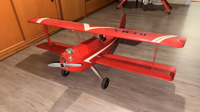 Aeromodello radiocomandato progettato e costruito a mano (no scatola di montaggio), interamente in legno di balsa e tela, completo di motore a scoppio e 4 servocomandi. Manca il pacco batterie per i servi e la ricevente RC. Usato in passato per volo acrobatico, il modello è fermo da anni ma è stato messo via perfettamente funzionante. Apertura alare 107cm, lunghezza totale 107cm. Peso totale: 2,1Kg In omaggio parti in balsa parzialmente costruite (ali e fusoliera) per realizzare un secondo modello biplano con la stessa tecnica. Lunghezza della fusoliera 72cm, apertura alare 101cm Prezzo totale: 650€ |